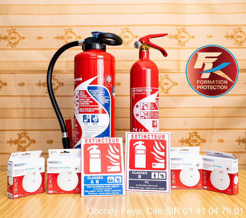 1 extincteur à eau 6 Litres 1 extincteur Co2 2kg 4 détecteurs de fumée
